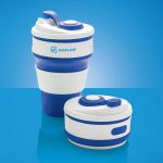 Our foldable travel cups are just one product in our range of products for use “On The Go”, they are really funky and functional. They can be collapsed into a pocket-sized disc and filled to be carried and used whilst out on the go. Brand your beverage when you apply your logo to the side of each cup.